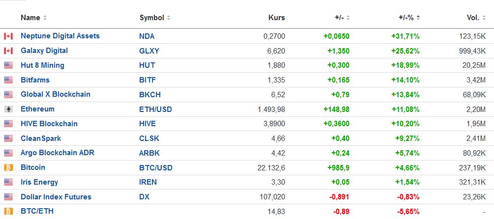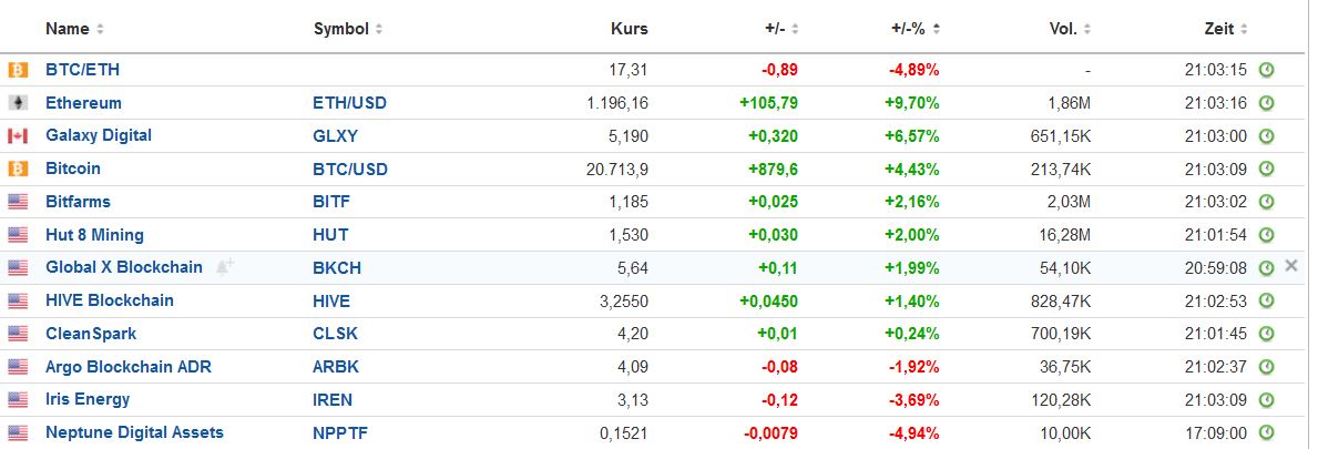 Bitcoin +7% und Hive schafft in Europa nicht mal diesen Bitcoin-Anstieg.