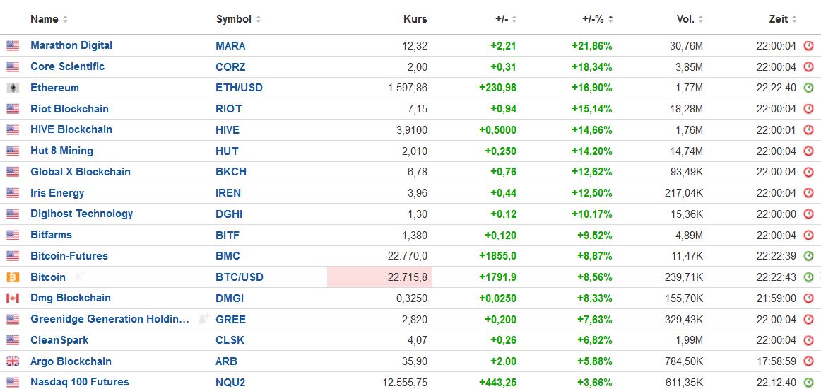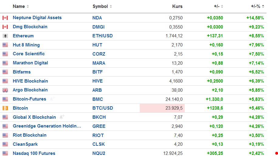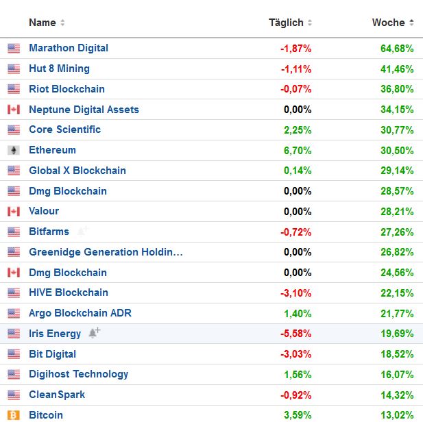 Dann zogen auch die Blockchainwerte wieder an. Liste mit den relativ starken Werten