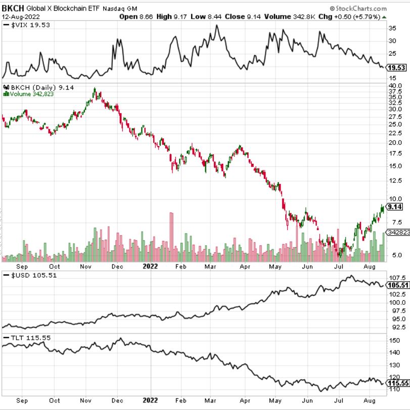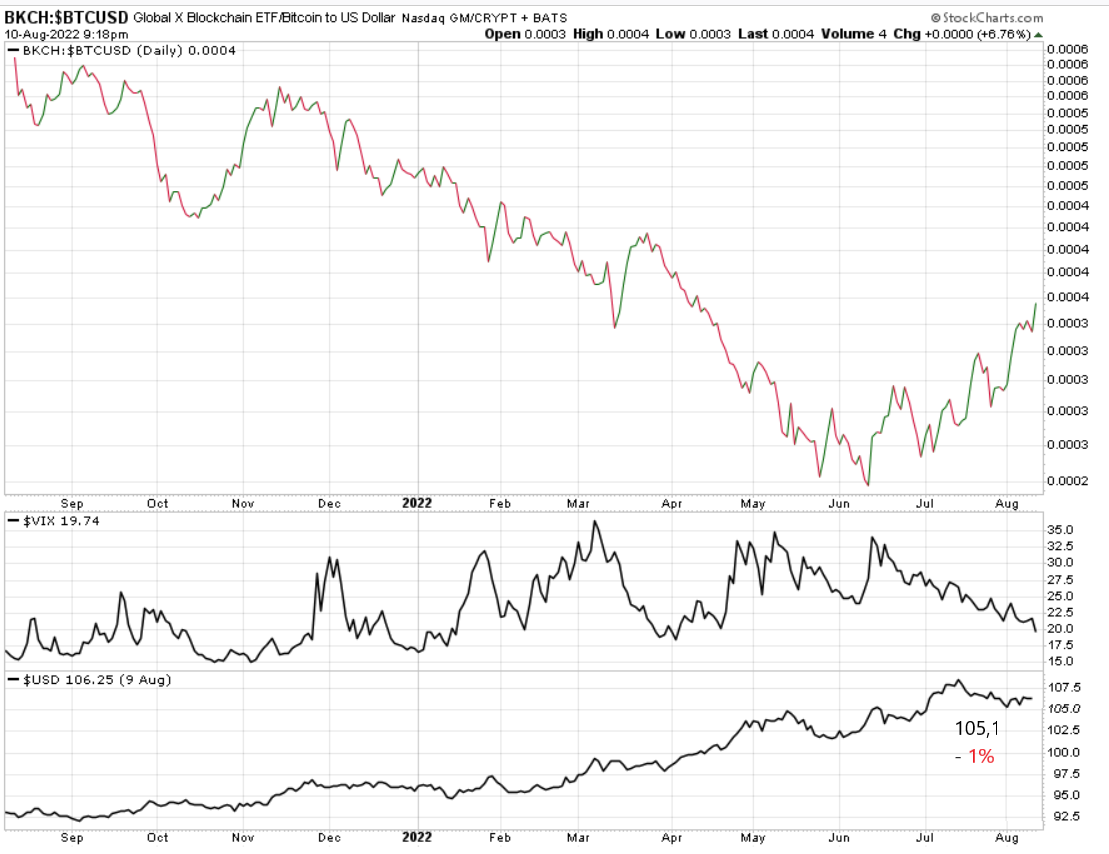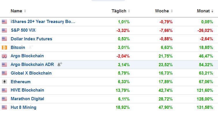 Als neuen Indikator habe ich den T-Bond in die Liste aufgenommen. Bitcoin bzw. die Blockchainaktien reagieren anscheinend negativ auf stark steigende Renditen.