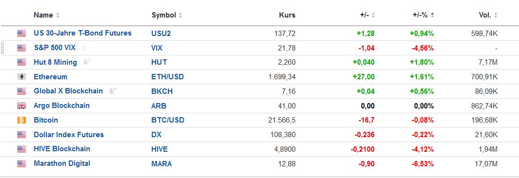 Die "US-amerikanische Aktienoptionen werden allerdings noch bis 22:00 Uhr gehandelt."