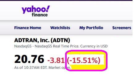 Aktuell bricht der der technisch ohnehin brutal überkaufte ADTRAN-Kurs schon um ca.11% ein an der US-Börse. Da kann man also die 17,17 € schonmal direkt in die Tonne kloppen als Schnee (bzw. Kurse) von gestern. Die Frage ist: Wie tief schmiert die Adrian Aktie noch weiter ab in der kommenden Zeit? Da könnte bei entsprechendem klaren Rücksetzer der ADVA Kurs auch wieder da stehen wie vor der heutigen Meldung. Von daher erstmal Vorsicht mit voreiligem Glauben es gäbe einen fixen Betrag. Hier gibt es lediglich ein Umtauschangebot in eine andere Aktie und alles ist volatil und variabel.