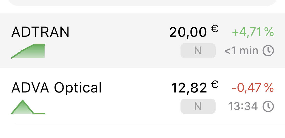 Der Kurs von Adtran steigt und somit sollte der Kurs von ADVA anziehen !
