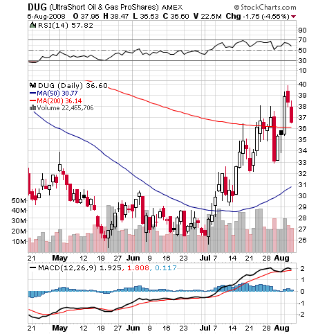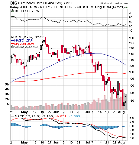 DIG ist der 2 x Ultralong auf US-Öl-und-Gas-Aktien. Ich war long im 2 x ultrashort auf DUG, dem Gegenstück zu DIG. Da ich die Trades auch gepostet hatte, konnte auch mein Bären-Freund Casaubon vom Long-Trade in DUG profitieren.