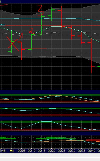 t! Angenommen, man wäre an der Spitze bei 6161 Short gegangen. 2 Kerzen später war der Kurs bei EMA(9) bei ~6137. Dort dann den SL noch auf Einstand zu lassen, finde ich fahrlässig. MH hat es vor geraumer Zeit mal so gehandhabt: Wenn das 1. Ziel (also meist EMA(9)) entsprechend weit vom Einstieg weg ist, dann dort Hälfte raus, Rest Stop auf Einstand. Gehts weiter zum 2. Ziel (mittleres BB), dort wieder ne Hälfte von der restlichen Hälfte raus, Stop trail 9 oder EMA(9) fix. Rest dann am gegenüberliegenden BB raus (3.Ziel), oder falls das nicht erreicht wird, per trailing Stop. Ist aber mMn alles Ermessenssache.