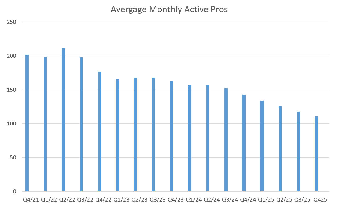 Q4 Average Monthly Active Pros 111.000 - 143.000 -23 %