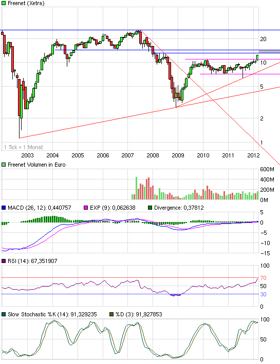 Bei 12 € gibts keine charttechnische Hürde. Aber du sagst ja schon seit vielen Wochen, FRN wird kurzfristig konsolidieren. Eingetroffen ist es nie.