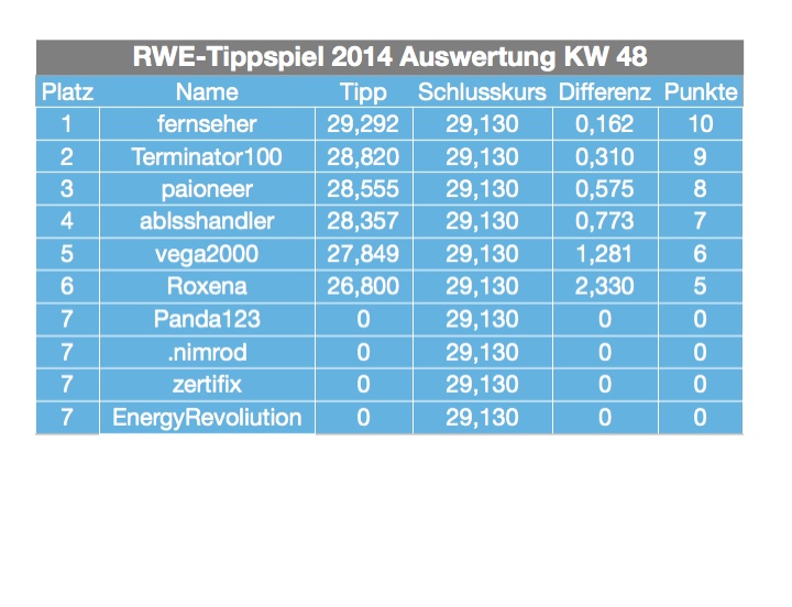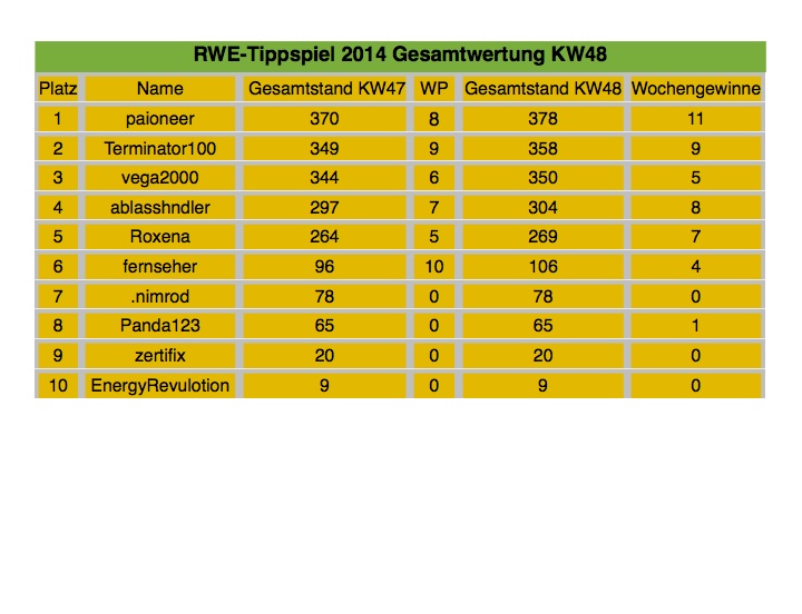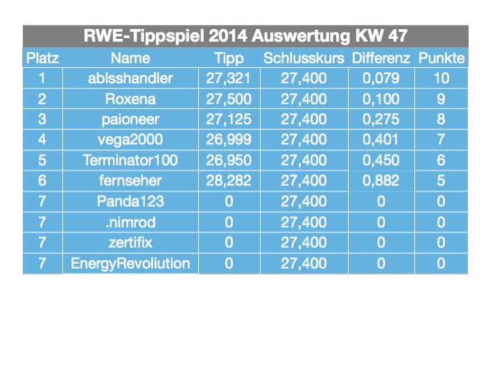 dass ich wieder einmal Wochengewinner werde. So schlecht sehe ich meine Chancen nicht ;-)