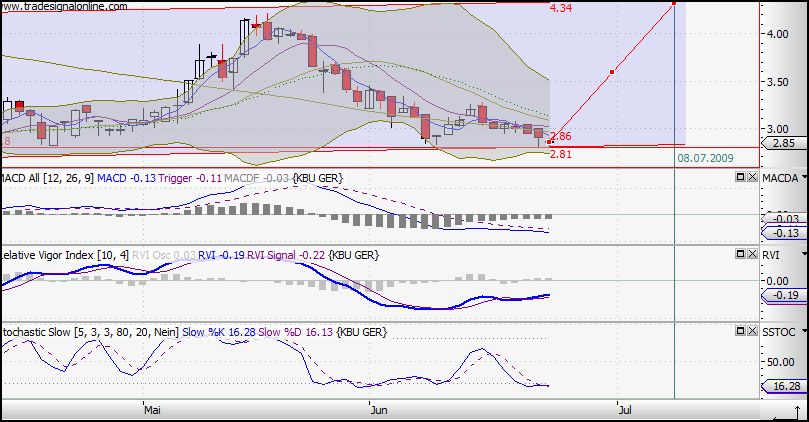 sagt. Ich denke ab morgen wirds (hoffentlich besser. Der RVI zeigt einen leichten Aufwärtstrend an. Der MACD zeigt dass ein Ansteigen kurz bevorsteht. Stochastic slow bestätigt dies. Jetzt muss nur noch der Markt mitspielen.....