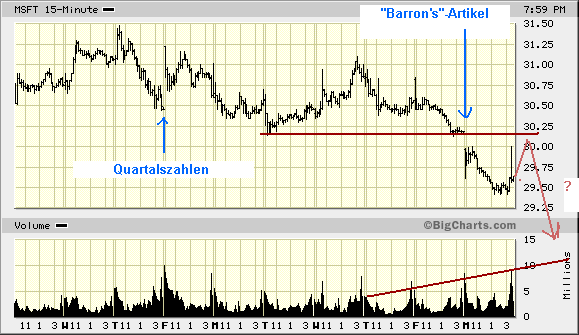 That sent Microsoft shares (MSFT) up more than 3% in late trading following release of the report. (aktuell: 31,15 USD = Eröffnungskurs vor den Zahlen).