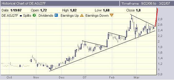 daß Powertech neben Forsys eine der besten Rohstoffaktie ist. Man sieht dies auch am Chart, der zwar nicht so steil ansteigt wie der von Forsys aber dafür stetig. Ich denke, daß wir bald die 4 EUR Marke ansteuern werden, nachdem die 3 EUR überschritten sind ;-)