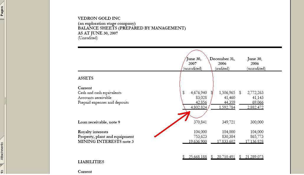 conjunction with Vedron Gold Inc. (the “Company” or “Vedron”) financial statements and notes thereto for