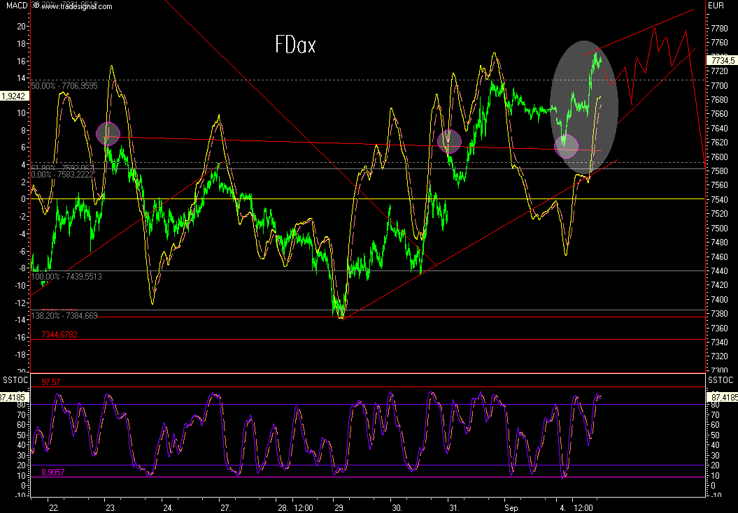 stark überkauft, dennoch sehe ich noch keinen Abschluss oben, was nicht heißt, daß er nich 50 Punkte fallen könnte, deshalb habe ich mir eine erste Position Puten ins Boot genommen (keine KO-Shorts)