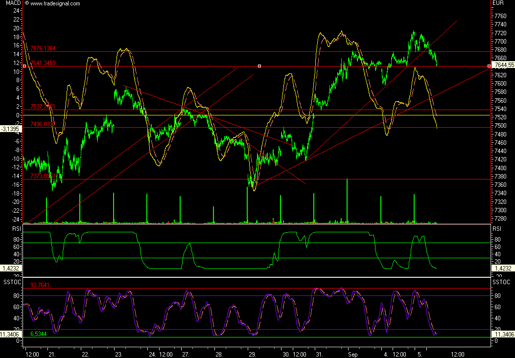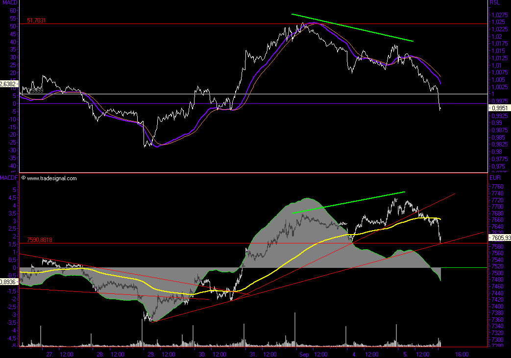 7550, darunter würde ich wahrscheinlich Verluste realisieren, oben ist gestern ziemlich sicher etwas zuende gegangen