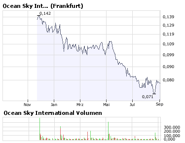 Ocean Sky ist ein niedrig bewertetes Unternehmen mit einem Bekanntheitsgrad von fast null. Jedes Jahr werden gute operative Gewinne erwirtschaftet, Dividende gezahlt und was mich besonders reizt, es wird kaum eine Pusher-Nachrichten-Flut losgetreten..so dass hier folglicherweise ein relativ ruhiger und sauberer Kursverlauf zu erwarten ist. Das steigern des Bekanntheitsgrades wiederum kann JAHRE dauern...