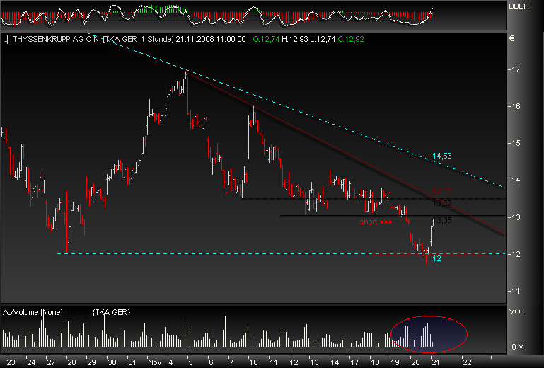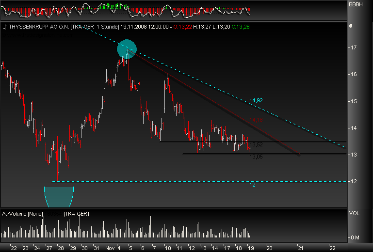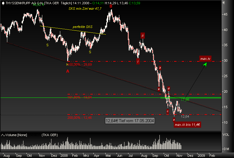 daily Thyssenkru­pp steckt weiterhin in einer range von 12,6€-18€,­ bei Überschrei­ten der 18€ würde eine angenommen­e "iv" laufen, bis in den maximalen bereich bei ca.31€