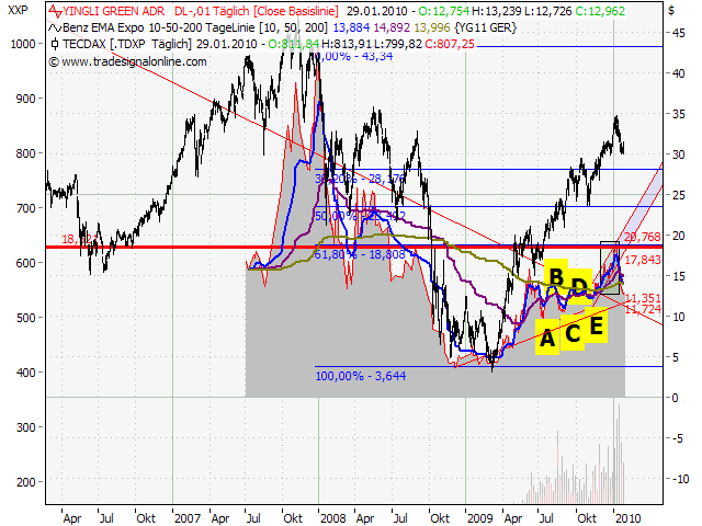 ich bin soeben auch mal eingestiegen, einmal direkt und einmal per optionsschien long bis Dez.10. Der kurssrückgang der letzten wochen, und vor allem der übertriebene von heute wg. den börsen, = Kauf kurse bei yingli. Bin schon "ordentlich" hoch eingestiegen. Also good luck und daumendrück.