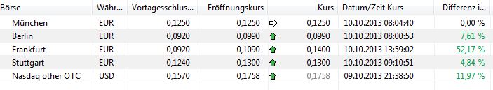 Börsenplätze: Canadian National Stock Exchange (Heimatbörse); Deutschland: Frankfurt, Berlin & Stuttgart
