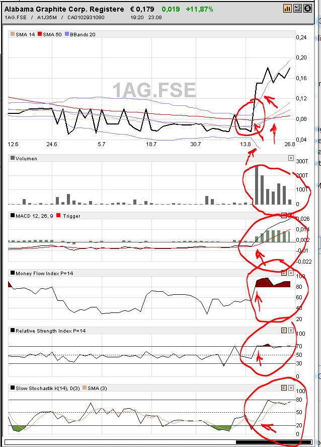 BÖRSE-Tipp: Der US-Börsendienst von ABF Media scheint gestern bei seiner gegenwärtig negativen Einschätzung zur Zenyatta-Aktie viel Aufmerksamkeit bekommen zu haben. Sollte die positive Einschätzung (der Börsendienst gibt gar an, Aktien von Alabama Graphite gekauft zu haben) auch nur ansatzweise ähnliche Aufmerksamkeit bekommen, sollten auch die Handelsvolumina bei Alabama Graphite an der Heimatbörse in Kanada deutlich zulegen. Die BÖRSE-Experten meinen daher: "Das aktuelle Kursniveau erscheint äußerst attraktiv. Nach einer bereits gesehenen kleinen Korrektur sollte nun wieder deutlich Luft nach oben sein.".