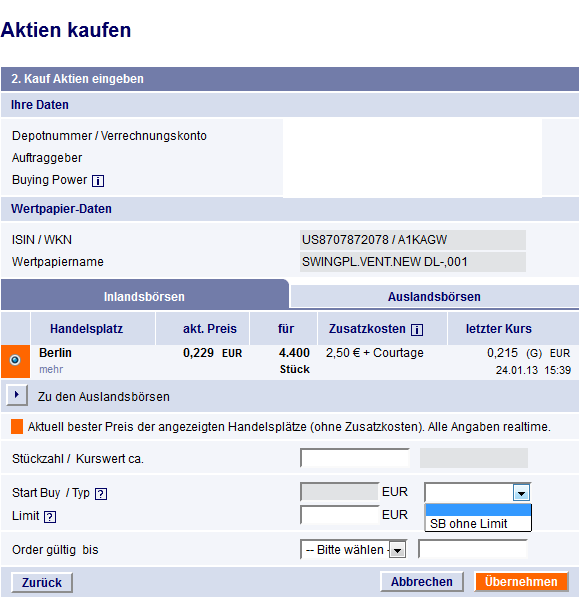 Stoppkurs kann ich bei SWVI nur in Berlin eingeben, an der OTC nur Kauf bzw. Verkaufslimit.