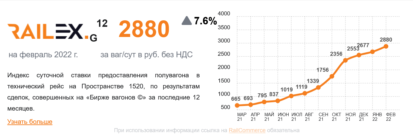 „Im Gondelwagen-Segment nähern sich die Mietpreise der Marke von RUB 1.500 pro Tag. pro Beförderung im Rahmen zuvor abgeschlossener Verträge und der Mietpreis auf dem Spotmarkt beträgt 2.500–3.000 Rubel pro Tag. Die Spotpreise übersteigen bereits das Niveau von 2018–2019, als es an Waggons mangelte, der Transport wuchs und die Kohlepreise (nach diesen Standards) hoch waren “, sagen Experten.
