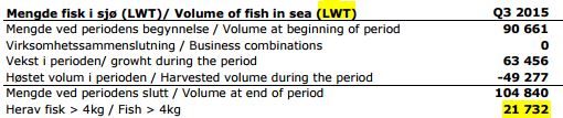 „Due to higher feed costs, the Group expects to see an increase in release from stock costs in Q4 2015 and in 2016...Uncertainty around future biological performance by Lerøy Midt is higher than normal. The production costs for the autumn 2014 generation will be higher than normal and will generate high release from stock costs for this generation when it is harvested in Q4 2015 and Q1 2016. “