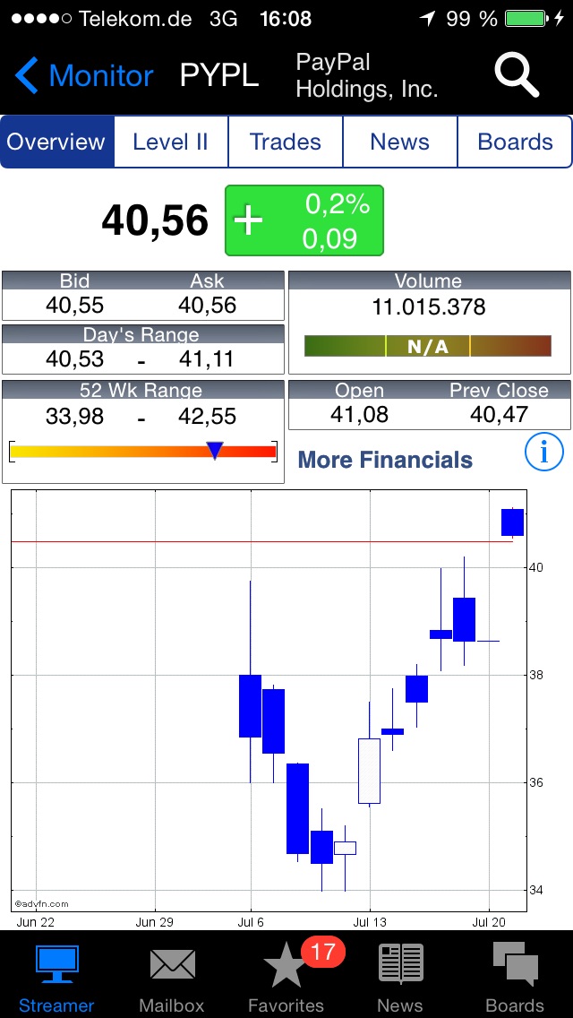 Angeblich peilt Paypal 1,14 Dollar Gewinn pro Aktie in 2015 an, wäre dann ein KGV von ca. 35. Wie man auf die 1,14 Dollar kommt ist mir nirgends ersichtlich?!
