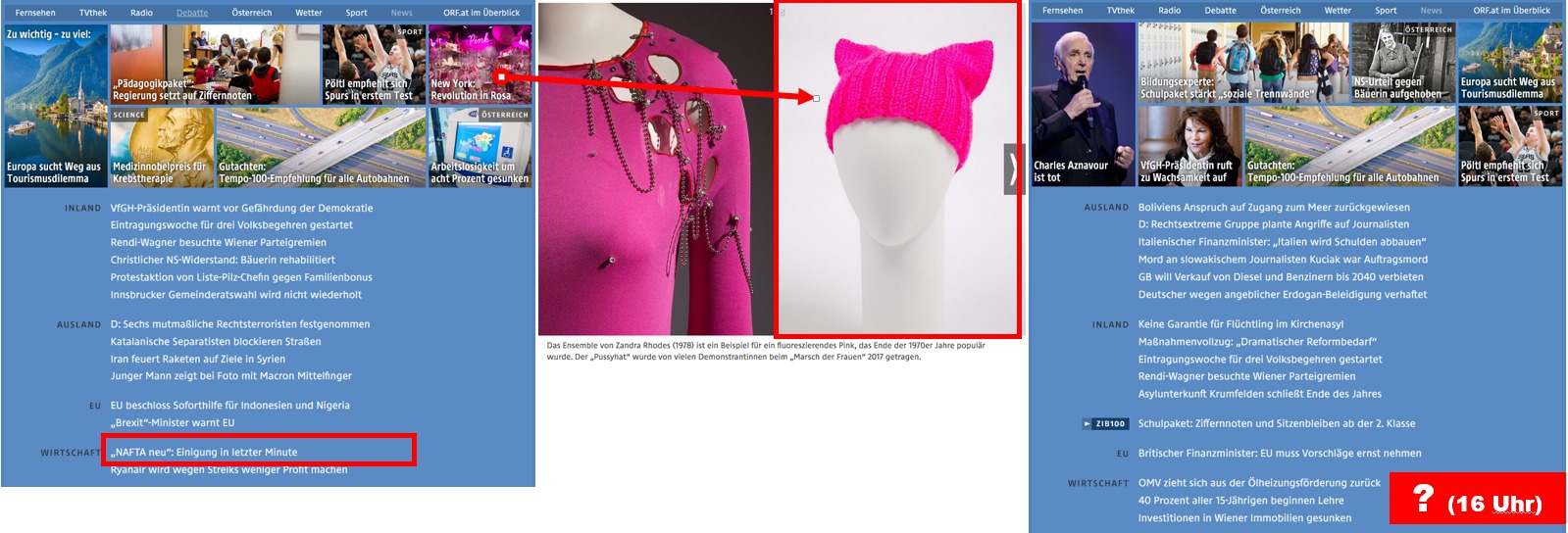 Obwohl nun Trump offensichtlich mit dem Freihandelsabkommen "USA-Mexiko-Kanada-Abkommen (USMCA)" ein erfolgreicher Durchbruch gelungen ist, scheint es, dass ORF die eigenen Leser lieber über wichtigeren Themen im "Bunte-Top-Platzierung"-Bereich informieren möchte, wie z.B. "Pussyhat Revolution". Das Thema "USA-Mexiko-Kanada-Abkommen" war dermaßen "unwichtig", sodass sogar bereits um 16 Uhr von der Webseite entfernt wurde.
