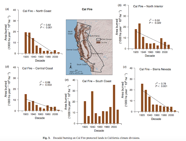 So there is a lot misinformation going around in the media, some environmental advocacy groups, and some politicians. The story can't be a simply that warming is increasing the numbers of wildfires in California because the number of fires is declining. And area burned has not been increasing either.
