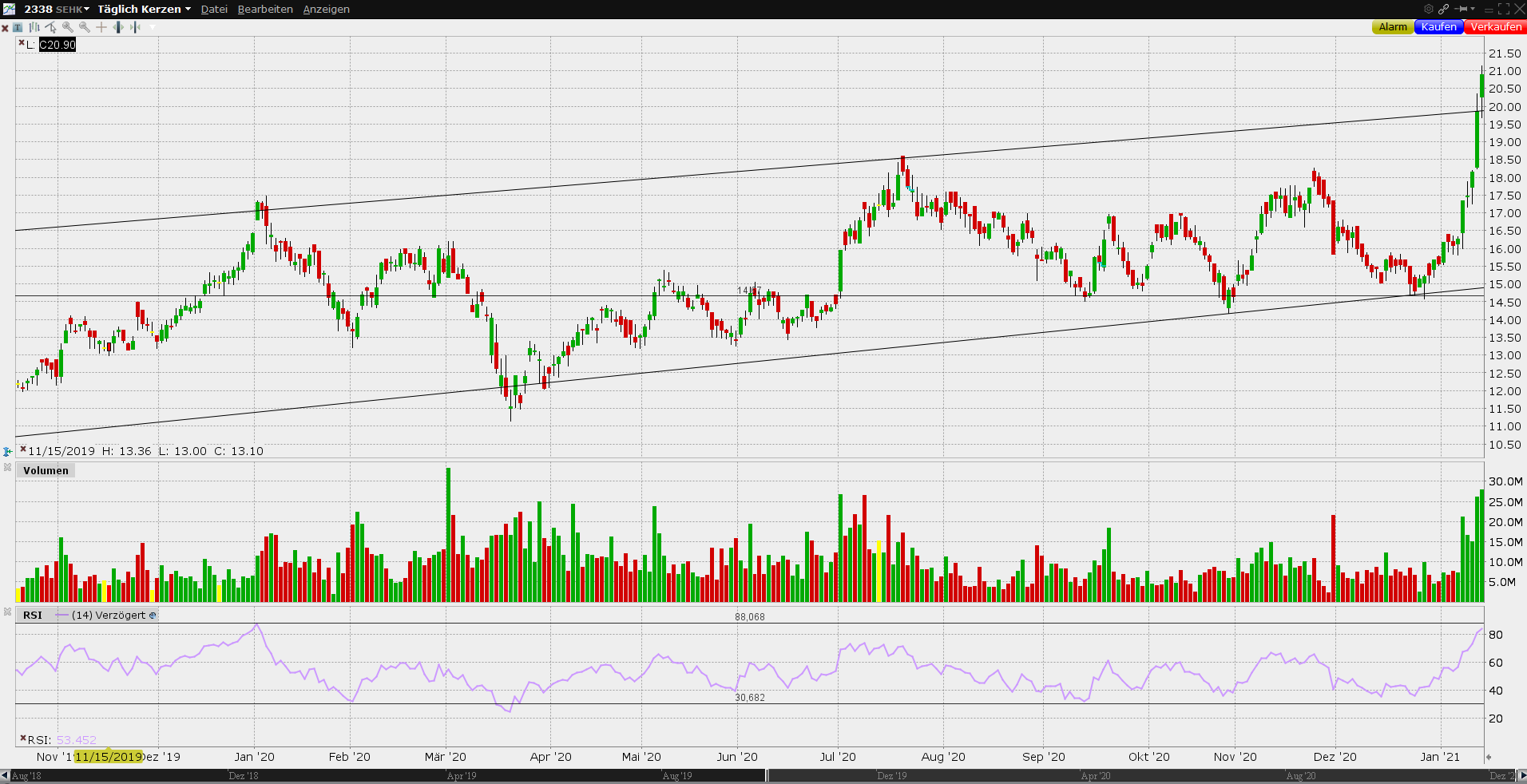 Ich sehe auch, dass viele Anleger jetzt noch Aktien suchen, die nicht völlig abgehoben sind und noch viel Potential nach oben haben. Meine H2-Werte im Depot haben teilweise die Bodenhaftung verloren. Sieht zwar gut aus, kann aber völlig in die Hose gehen. Ich suche langfristige Investments und ich denke, bei Weichai bin ich richtig. Bleibe auf jeden Fall long.