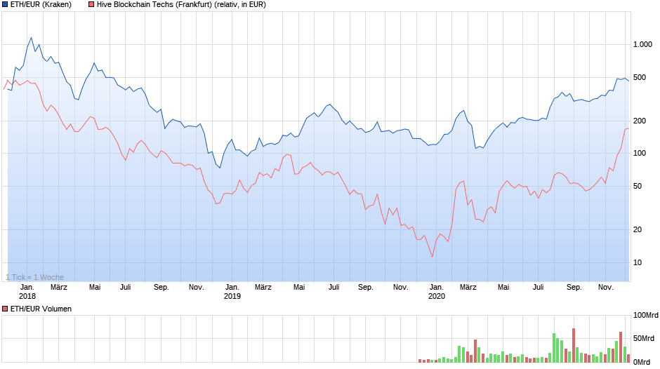 Das kann natürlich sein, dass der HIVE Kurs dem Ethereum-Kurs folgen wird. Aber heute eher nicht mehr, da in CAN und US heute Börsenfeiertage sind.