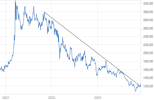 Als ich neulich diesen unansehnlichen ID.7 im TV-Spot sah, war ich nah dran, meine VW-Position glatt zu stellen... macht insgesamt einfach zu viele Kopfschmerzen, diese Aktie. Der ID.3 GTX sieht aber ganz schick aus, macht wieder Hoffnung. Die kleinste positive Meldung reicht derzeit für das eine oder andere Prozent. Das Papier klettert wieder, sehe es im Aufwärtstrend. Will die Vorzüge jetzt noch etwas nach oben laufen lassen bis Jahresende, und dann zumindest etwas reduzieren, aber mal schauen... Das "Effizienzprogramm", das noch vor Weihnachten stehen solle, dürfte den Kurs noch etwas beflügeln und am Markt honoriert werden. Mittel- und langfristig sehe ich aber eher schwarz - Anschluss bei Elektromobilität/Digitalisierung einfach irgendwie verpasst. Bin von Stellantis bzw. insb. den Marken nicht der größte Fan - aber was die in dem Bereich, mit ihren kleinen Modellen abliefern, wirkt deutlich durchdachter. So weit MEINE Überlegungen...