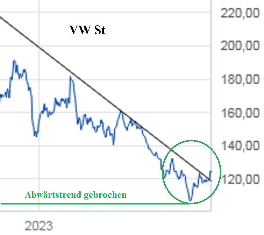Für den jüngsten Anstieg genügten lediglich wenige positive Meldungen, nachdem sämtliche Probleme des DAX-Konzerns größtenteils schon im Kurs eingepreist waren. Weitere gute Nachrichten sollten VW Rückenwind bescheren.