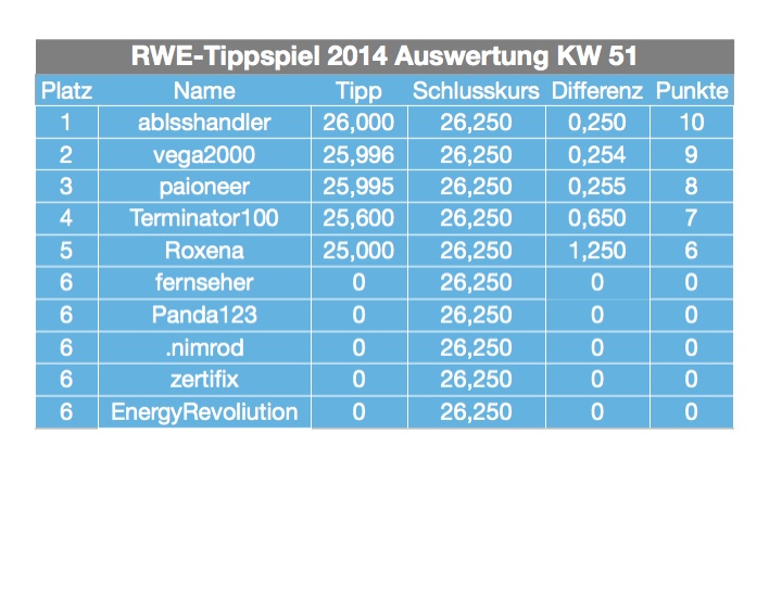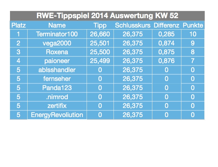 dann mal LOS , KW 52 - Terminator100 - 26,66