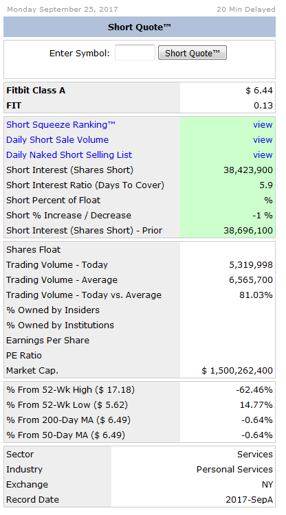 Fitbit Short Interest fast 20%