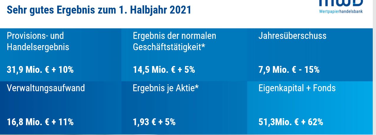Als Skontroführer haben Sie hervorragende Ergebnisse für das 1.Halbjahr geliefert - wenn nicht besserer wie in 2020. Das EK liegt bei über 50 Mio. und das Ergebnis vor Zuführung zum Bankenfonds bei fast 2 EUR. Finde mwb weiterhin unterbewertet und halte an meinen Anteilen fest.