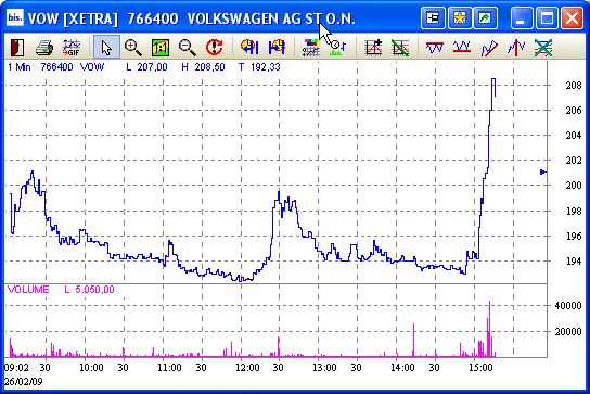 sehr schön, welche Kursbewegungen, sowohl nach unten als auch nach oben mittlerweile bei VW schon durch kleine Umsätze ausgelöst werden können.