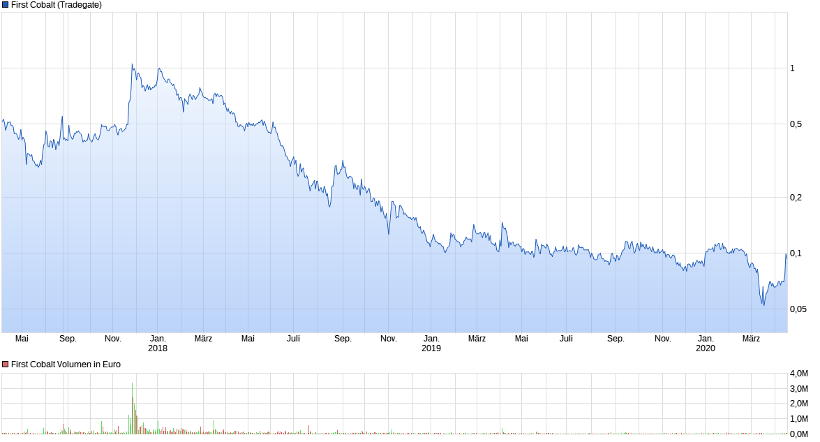 1 EUR werden wir wenn überhaupt erst sehen wenn FCC selbst Cobalt fördert und der Preis für Cobalt um ca. 50% steigt. Dann wären 1,50 CAD möglich. Du mußt auch mal rechnen was FCC verdienen muss dass jemand 1,50 CAD bzw. ! EUR für eine Aktie auf den Tisch legt. Ich für meinen Teil werde bei 0,2 EUR die Hälfte meiner abgeben und mit dem Rest auf die 0,5 EUR warten, Dann bin ich komplett raus.