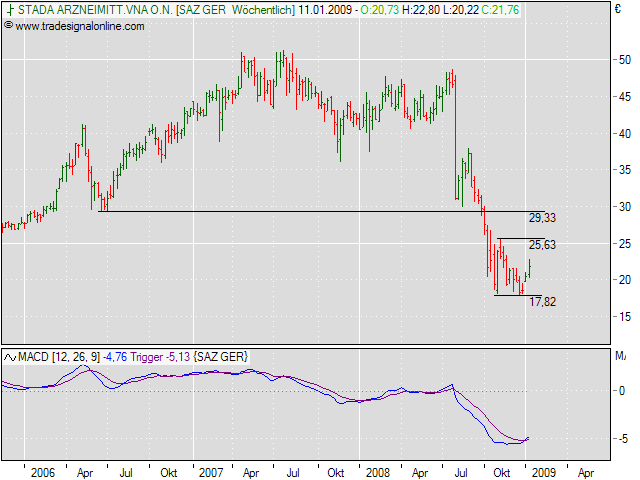 Die Experten der "Prior Börse" empfehlen bei der STADA-Aktie auf die Wende zu setzen. (Ausgabe 03 vom 14.01.2009) (14.01.2009/ac/a/d)