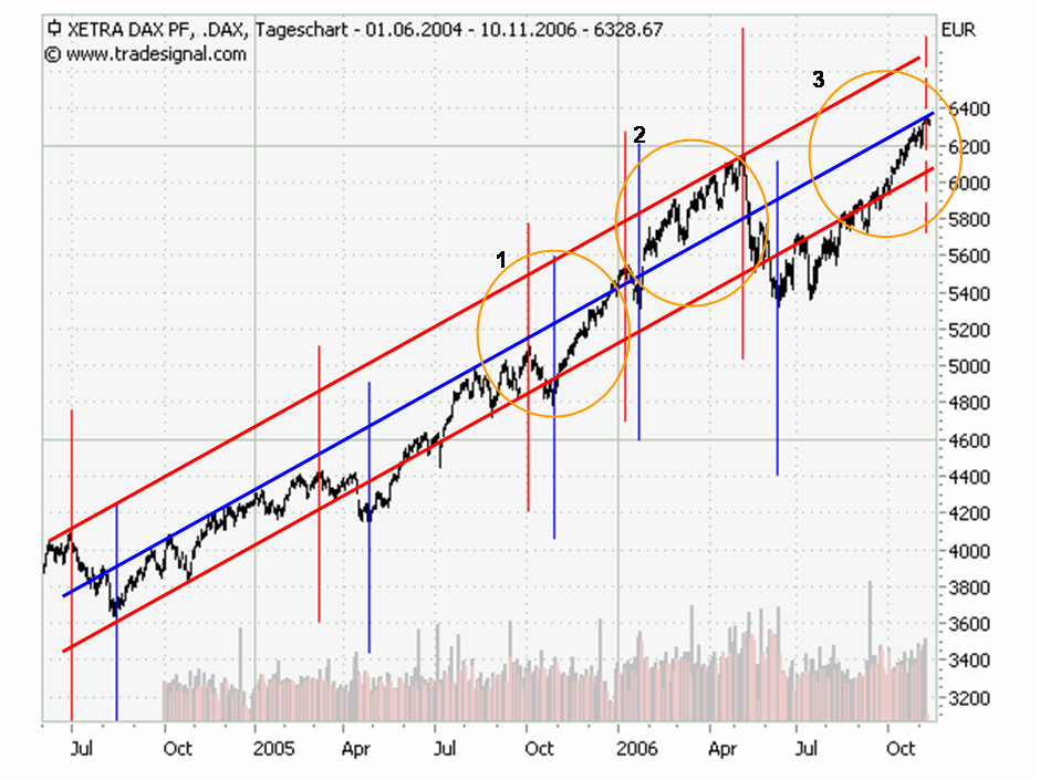 Liegt es vielleicht daran, dass am 20.11.2006 seit dem Top im Januar 2000 fast genau 2.500 Tage vergangen sein werden? Und dass die gleiche Distanz (2.500 Tage) zwischen den Tops der Jahre 1966 und 1973 gemessen wurde?
