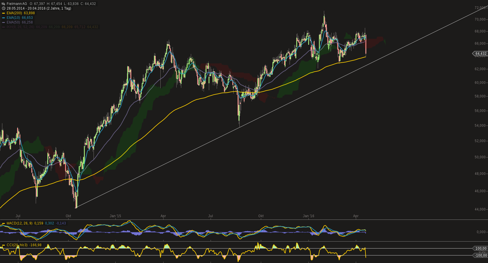 runter bei Fielmann . Unterstützung bei Euro 63,7 - 64 und bei € 63,5 = 200 Tage Linie