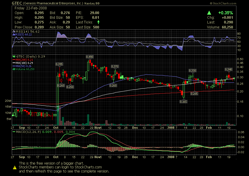 Genesis Pharmaceuticals Enterprises, Inc. (OTCBB:GTEC) ("Genesis" or the "Company"), a U.S. pharmaceutical company with its principal operations in the People's Republic of China, today announced that the Company will host a conference call at 10:00 a.m. EST on Tuesday, February 19, 2008
