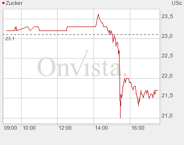 Der Zuckerpreis stieg am Donnerstag weiter: An der Terminbörse Liffe erreichte weißer Zucker am Donnerstagvormittag zeitweise mit 589,90 $ ein neues Rekordhoch. Am späten Vormittag lag der Preis bei 587,90 $ pro Tonne. Kontrakte auf Rohzucker waren vor wenigen Tagen auf ein 28-Jahres-Hoch geklettert.