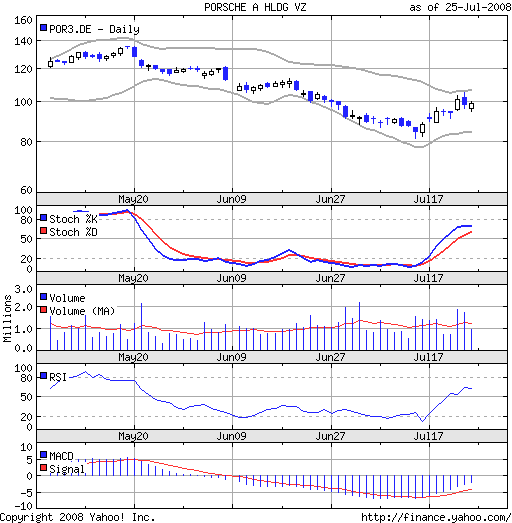 Die Aktie von Porsche notiert derzeit im Frankfurte­r Handel mit einem Minus von 4,86 Prozent bei 92,00 Euro. (01.08.200­8/ac/n/nw)­