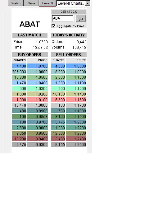 verstehe ich auch nicht ganz, ich weiß nicht wann ABAT anfängt seine Aktien zurück zu kaufen...sollen ja insgesamt 10 Mio zurückgekauft werden. Habe die letzten zwei Tage das ganze etwas beobachtet es gingen immer so 400k Aktien über die Bühne im Nasdaq. Also irgendjemand kauft da gerade groß ein.