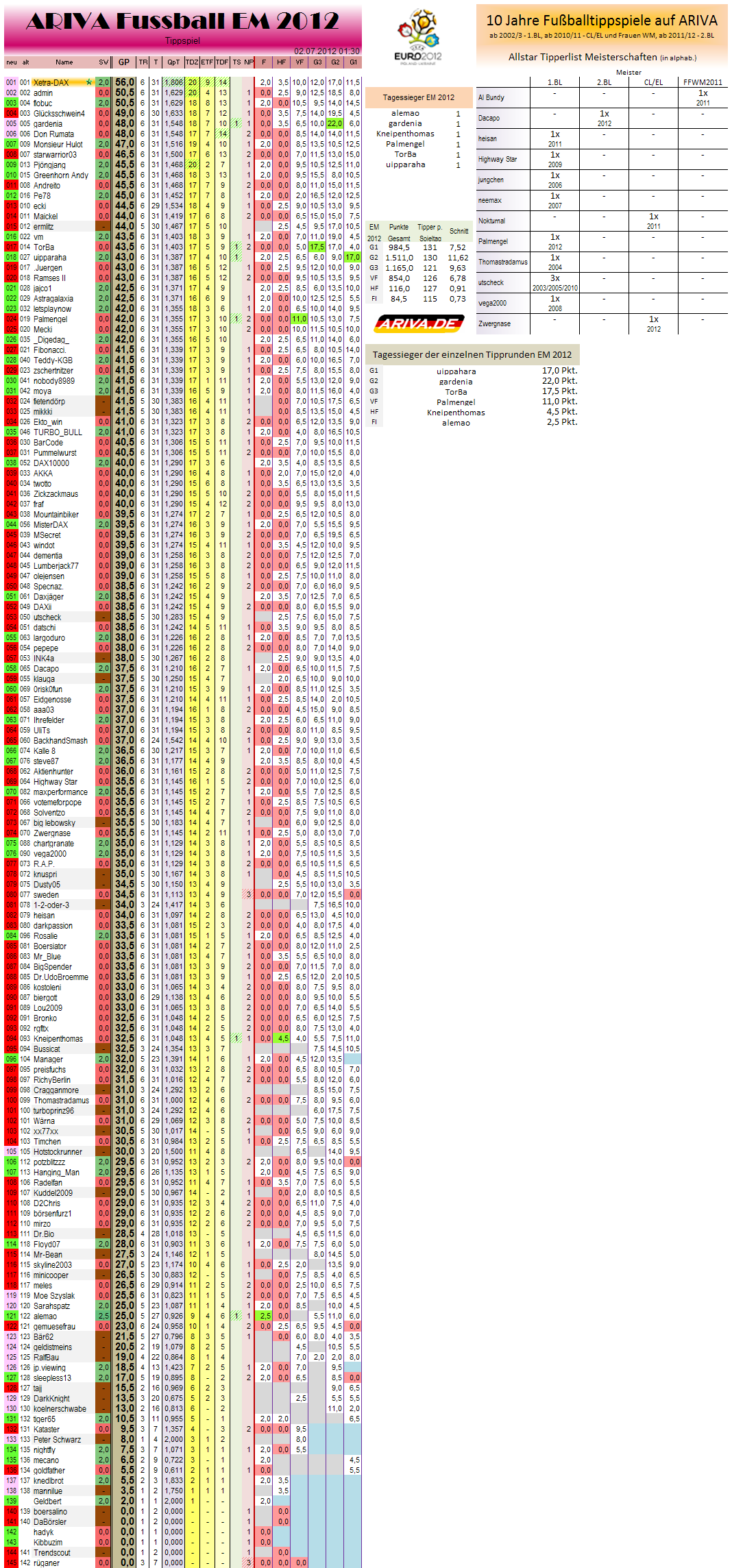 GEWINNER DES ARIVA EM2012