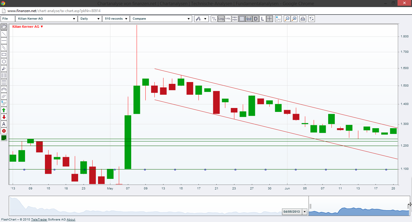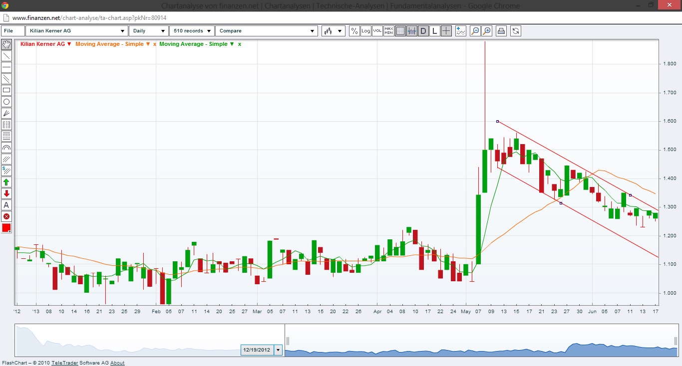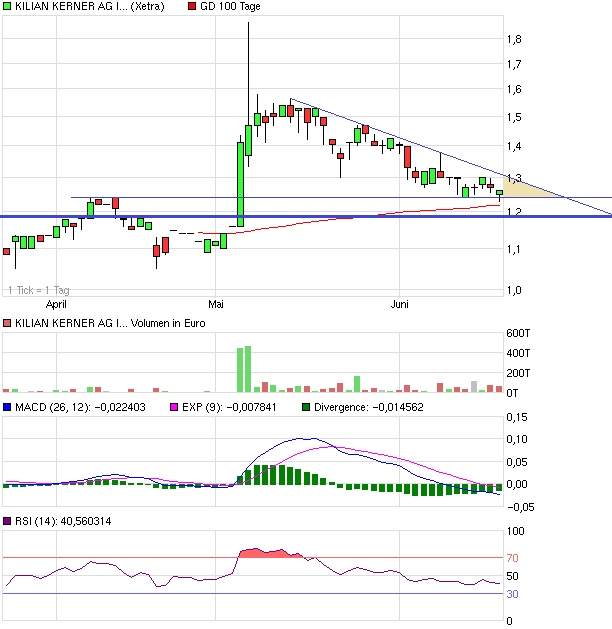 der kursverlauf zeigt ebenfalls eine potenzielle gefahr das beim unterscheiten der 1,2 € marke ein weiterer abverkauf droht.