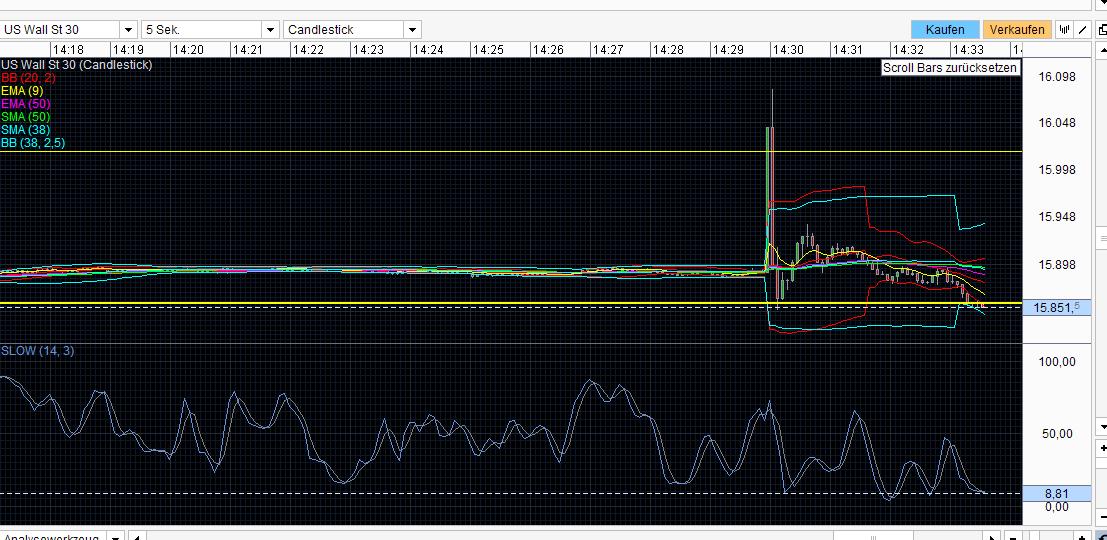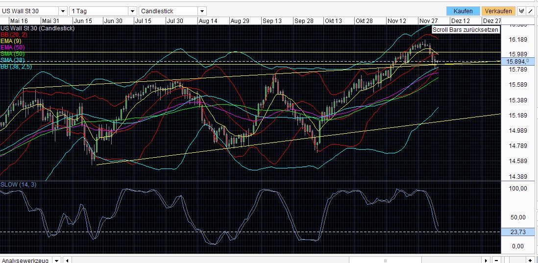 38er und Indikatoren schon wieder am max - hat nix zu sagen - ABER es kann eine Warnung sein gerade nach einem Abverkauf von 400 punkten