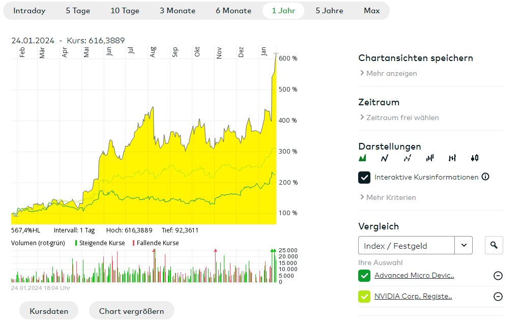 und das ist wohl noch lange nicht das Ende der Fahnenstange. AMD und Super Micro laufen ja fast parallel hoch....KI ist der neue Supermarkt und wird noch weiter wachsen und wachsen. Genauso wie wir uns in 5 Jahren alle die Augen reiben werden, wie KI unser gesamtes Leben verändert hat, werden wir uns auch bei den Aktienkursen die Augen reiben, was alles möglich war bzw. aus heutiger Sicht ist. Wünsche allen mutigen mit Visionen viel Erfolg und gratuliere den zukünftigen KI Millionären schon heute. ;)
