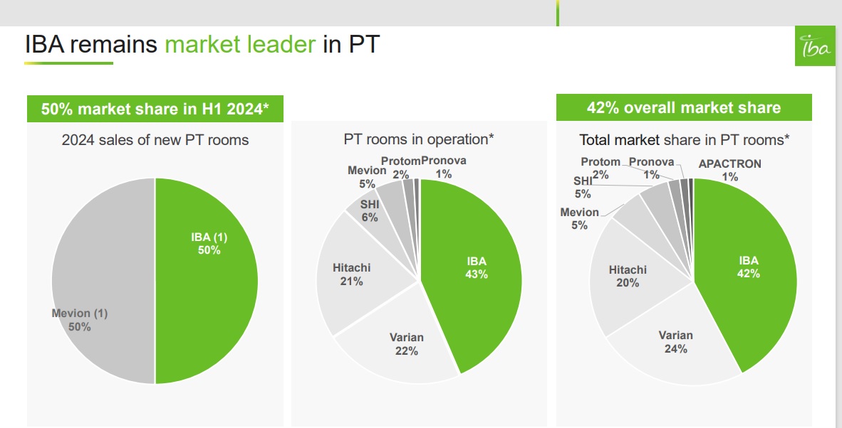 Situation bzw. den Case bei IBA wie folgt: IBA hat in der Vergangenheit seit 2017 mit den Protonenräumen Geld verloren. In der Coronazeit konnten keine installiert werden, dann kam die Inflation was bei hohen Backlog übel ist. Ab nächsten Jahr sind aber genug Systeme installiert, damit man damit nachhaltig Geld verdienen kann, über Upgrades und Service. Dies sind wiederkehrende Umsätze. Proton wird immer eine Nische bleiben, mehr als 3-5 Räume wird man nicht verkaufen pro Jahr. Solange es eine Cashcow wird und im Mittel um 5% wächst ist es ein sehr gutes Business.