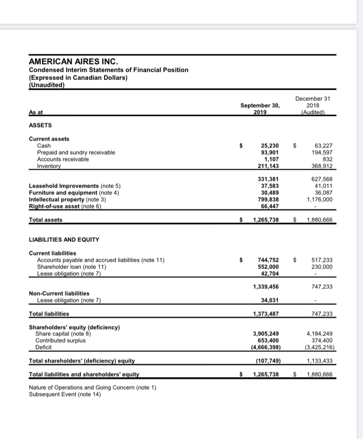 Dann sag mal warum es im letzten Sedar Filing nur zu 25.000 Can Dollar Cash gereicht hat und das EK negativ ist.
